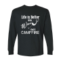 Life is Better with Wine- This cozy unisex Long Sleeve Tee is made for crisp mornings, late-night fires, and the kind of camping trip where the only rule is: if you’re unhappy… take a hike.